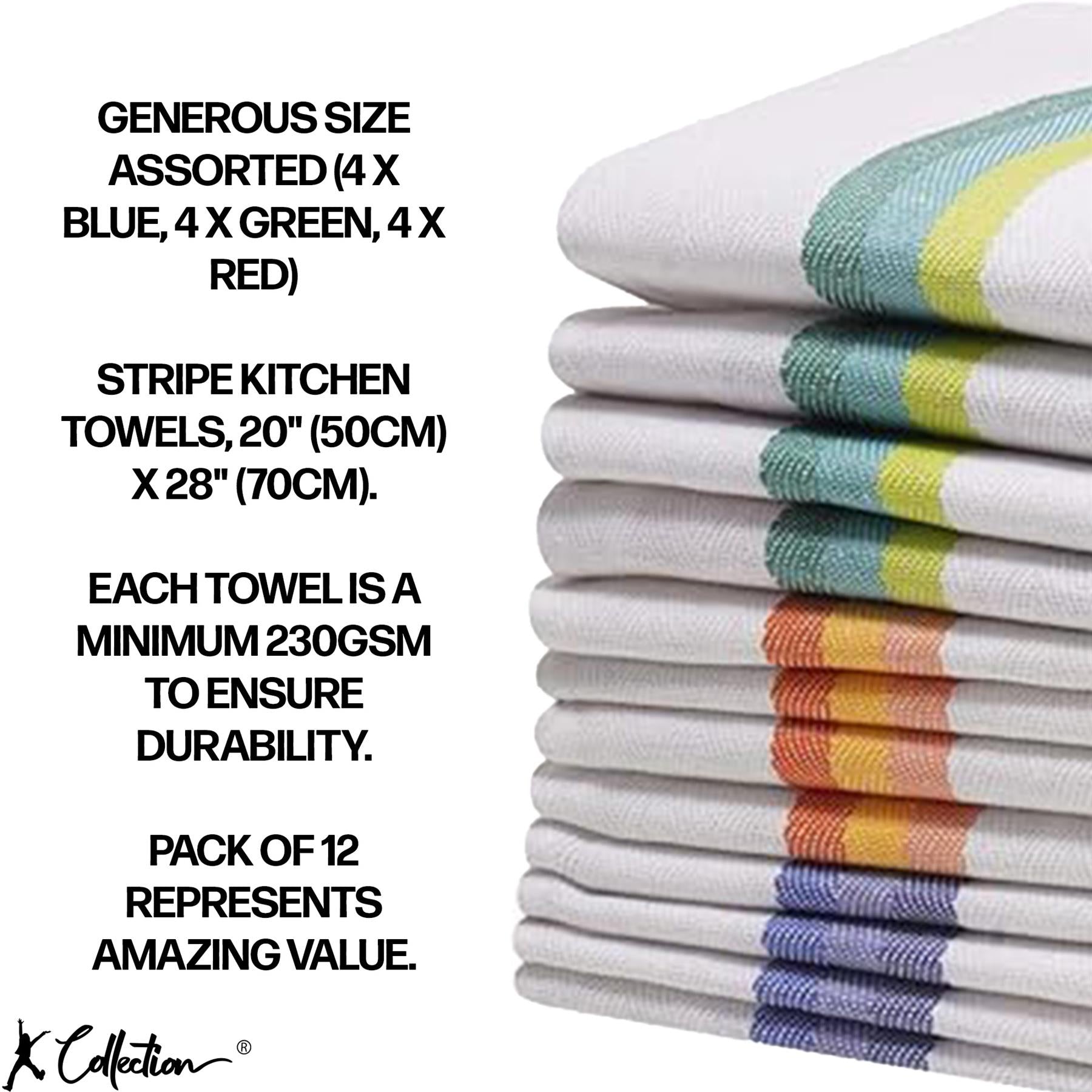 - 12-PACK VERSATILITY: Available in red, blue, green, or multi-color options, each towel measures 50x70cm, and with a weight of 230gsm, they're generously sized and highly absorbent.