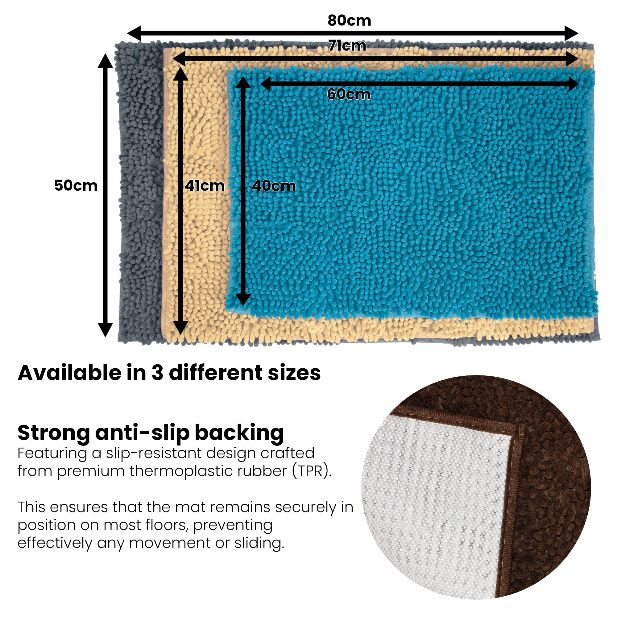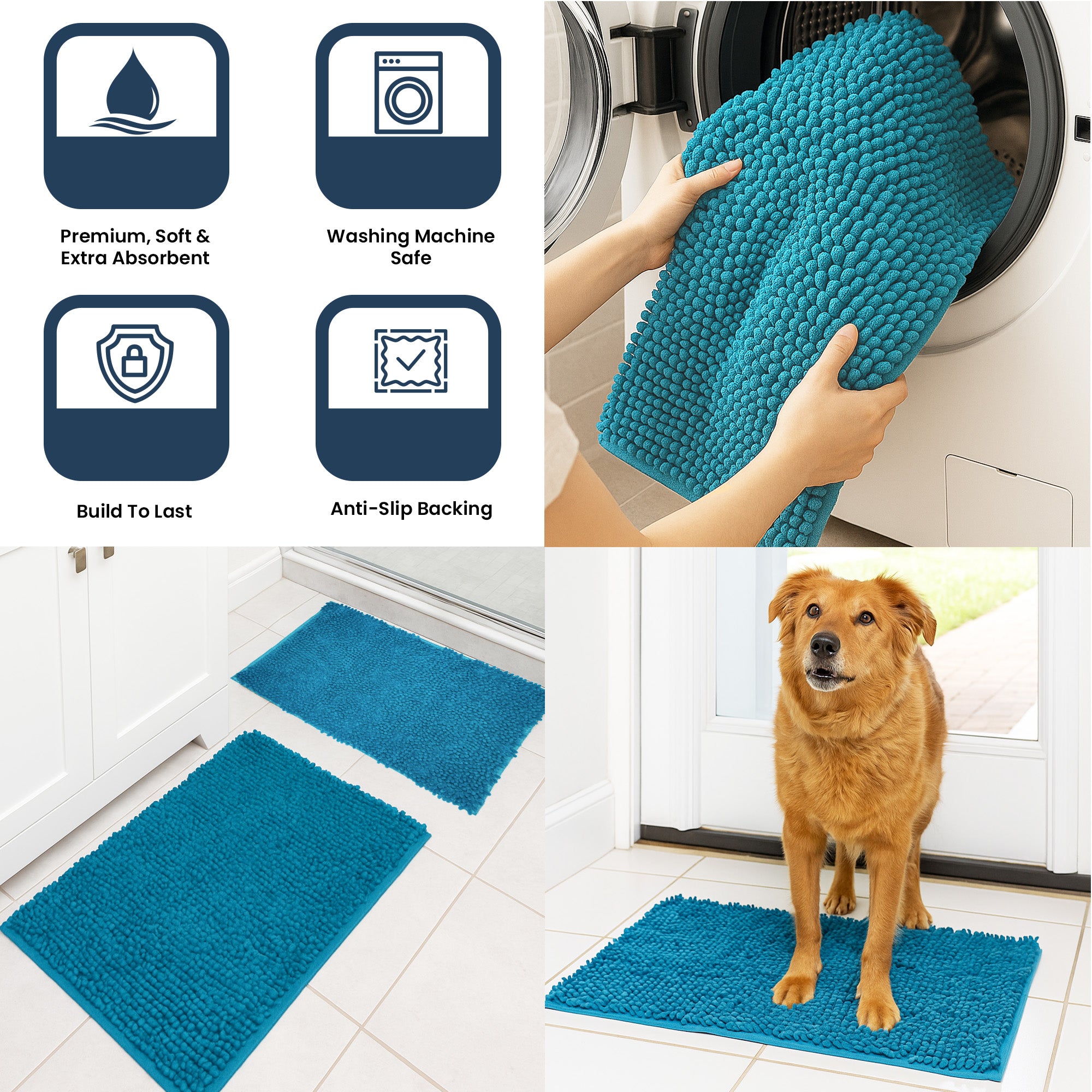 • ABSORBENT & QUICK-DRY: Made with high-performance chenille that absorbs water 3x faster than standard mats. The deep-pile construction traps moisture effectively while allowing rapid evaporation, keeping floors dry and preventing mildew buildup between uses.