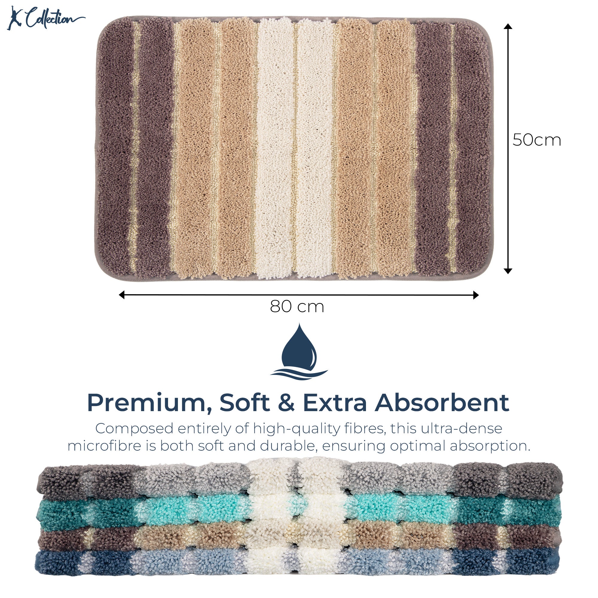 Indulge your feet in ultimate softness with our high-density microfibre bath mat, crafted to deliver a plush, cushioned feel with every step. The contemporary striped design adds a stylish, decorative touch to any bathroom, laundry room, or home interior, making it both a functional and aesthetic addition to your space.