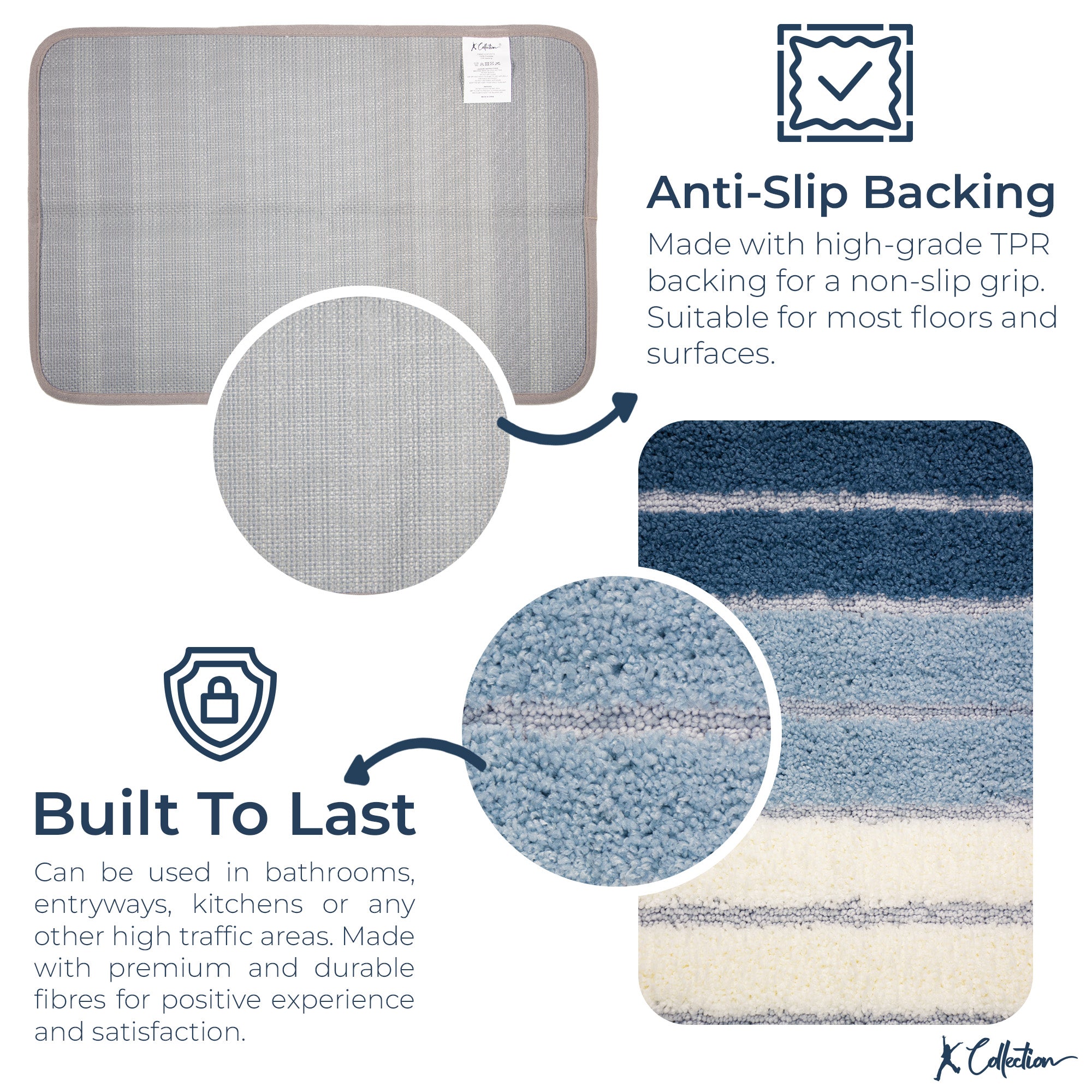 - ULTRA ABSORBENT & ANTI-SLIP BACKING: Designed for safety and performance, this absorbent bath mat quickly soaks up water to keep your floors clean and dry. The strong thermoplastic rubber (TPR) anti-slip backing ensures a secure grip on most surfaces, including tiles and laminate, reducing the risk of slips and falls in wet areas.
