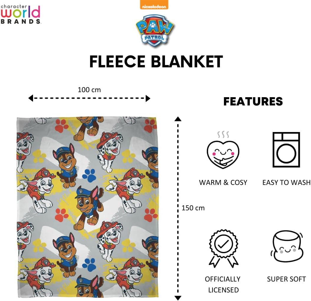 Paw Patrol Fleece Blanket - Splodge Design - 100% Polyester - 100 x 150cm