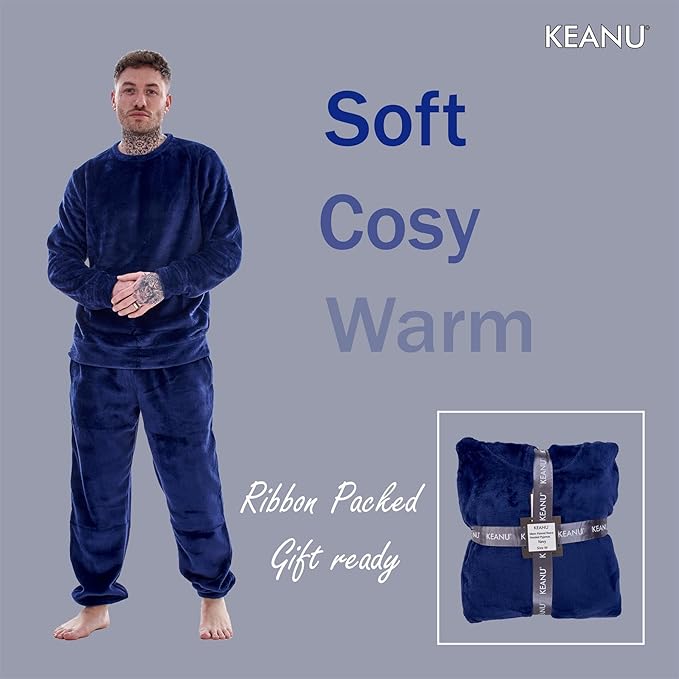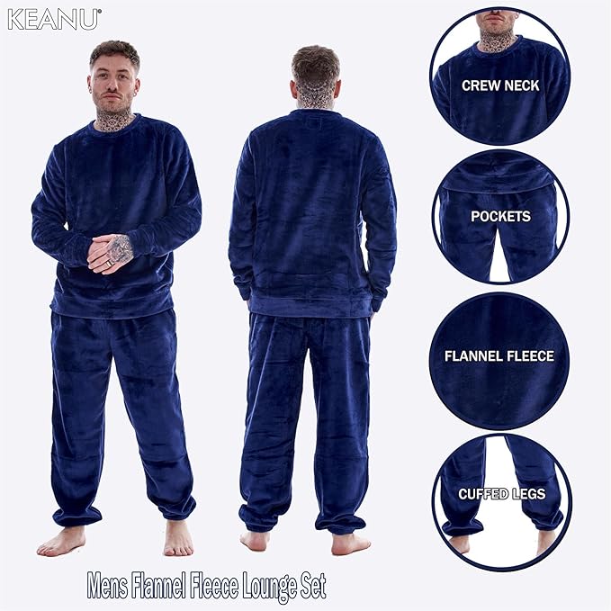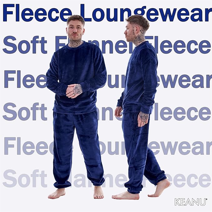 • Wrap yourself in luxurious warmth with the Men’s Flannel Fleece Crew Neck Pyjamas by Keanu. Designed for ultimate relaxation, this ultra-soft set is perfect for chilly nights and makes an ideal winter gift.