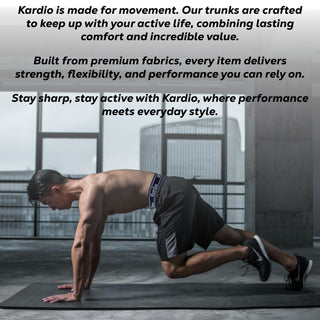 Kardio Mens 6 Pack Performance Boxer Trunks - Blue Mix Design - 95% Cotton, 5% Elastane
