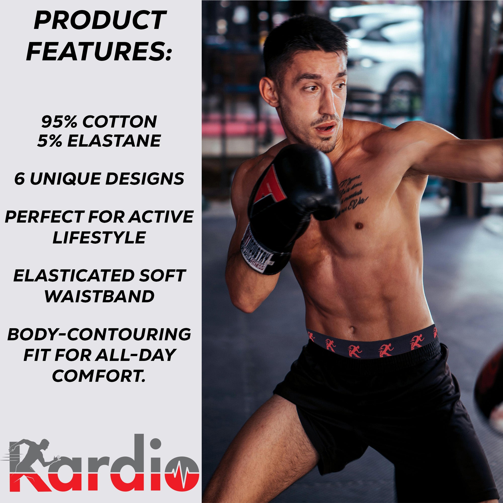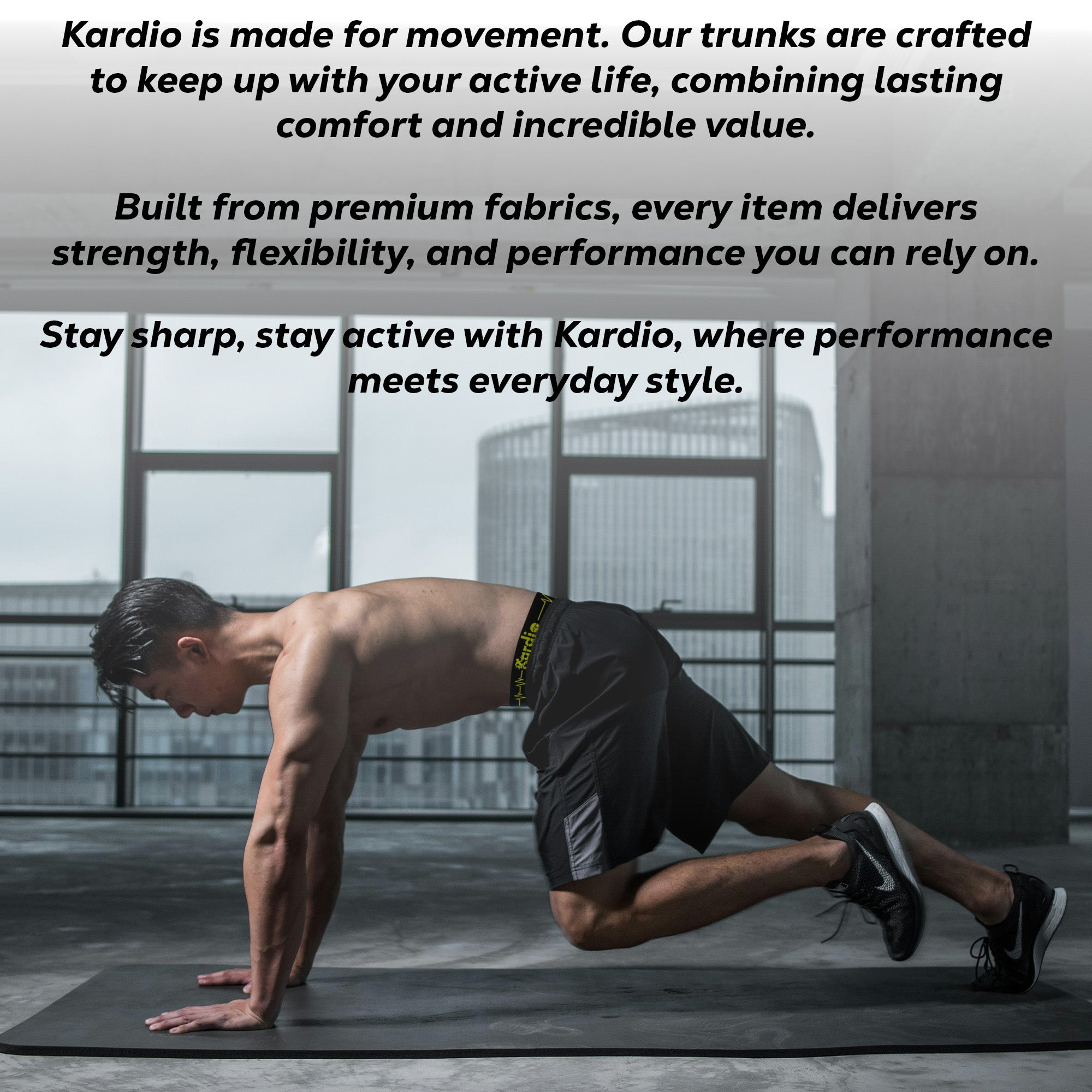 - STAY-PUT WAISTBAND & ANTI-RIDE FIT: Each trunk features a durable elasticated waistband branded with the Kardio logo. Designed for performance, these boxers provide a secure hold without digging in, while the ergonomic cut prevents bunching or riding up during movement.