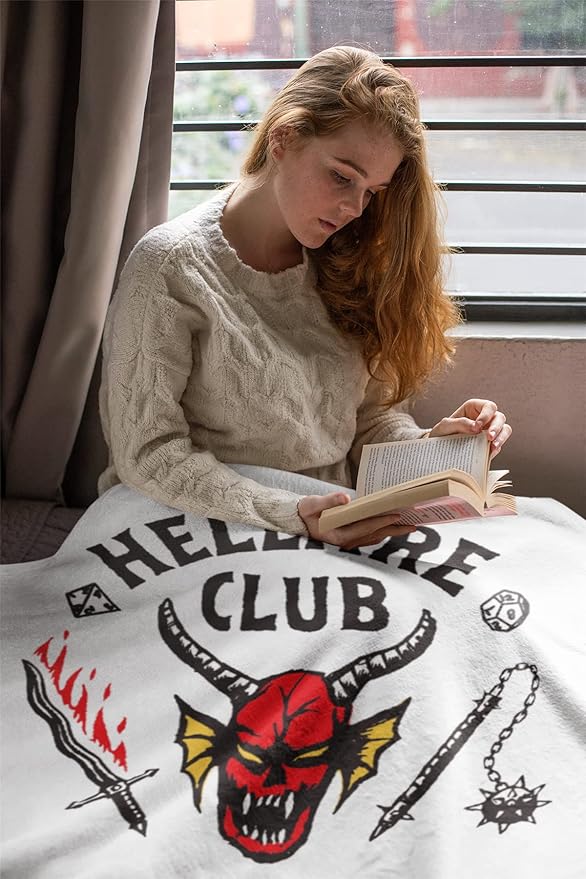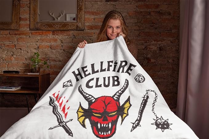 For all Stranger Things fans, this officially licensed fleece blanket is a must-have! Featuring the iconic Hellfire Club logo on a white background, it’s the perfect way to showcase your love for the hit Netflix series while staying cozy. Whether you’re watching your favorite episodes or just relaxing, this blanket offers comfort and style.